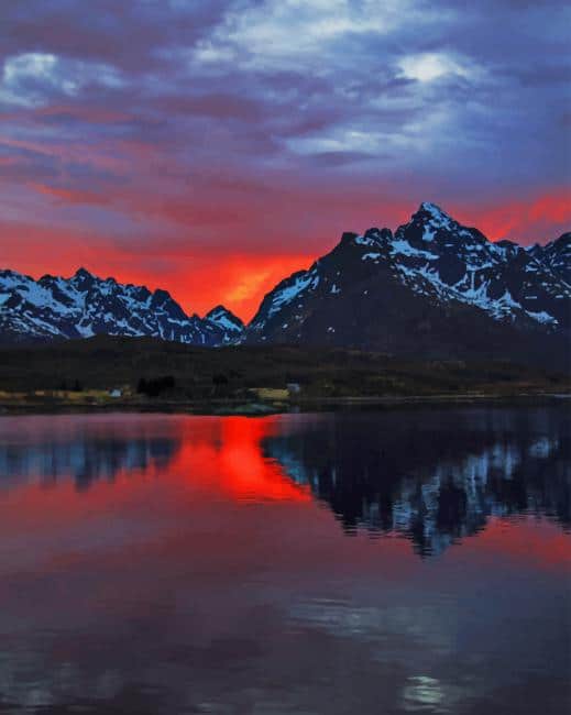 Make Your Wall With Sunset View With Frozen Mountains paint by numbers